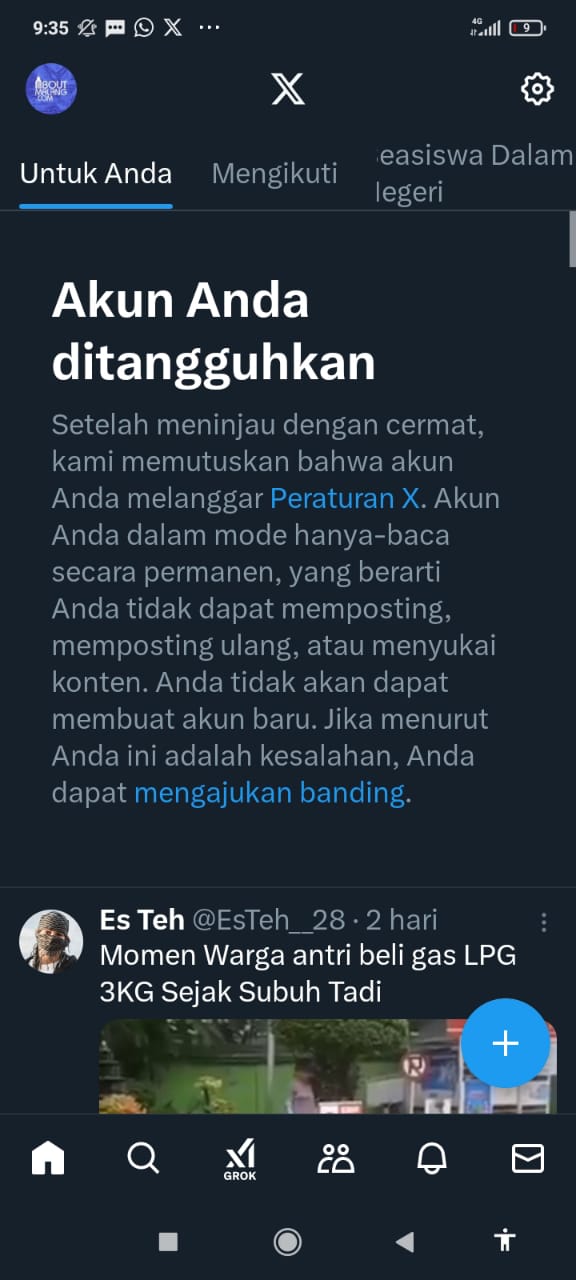 Setelah 3 jam memposting berita tersebut, akun X tidak bisa diaktifkan dan admin menerima informasi sepert ini: